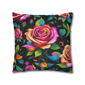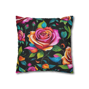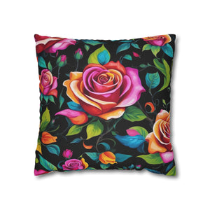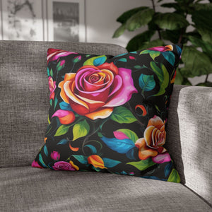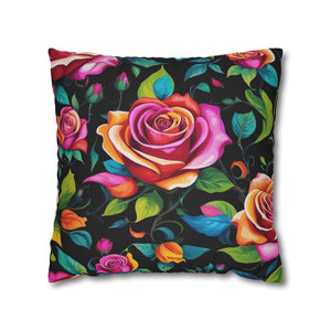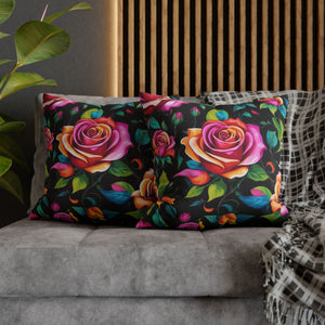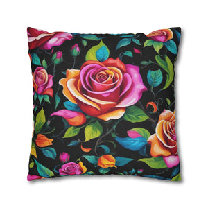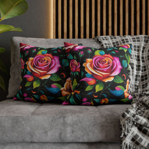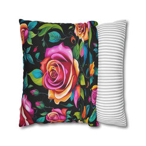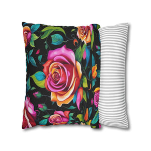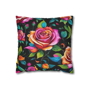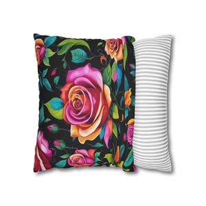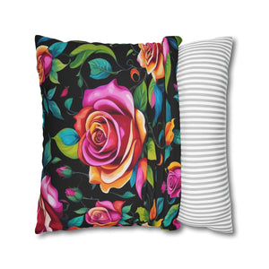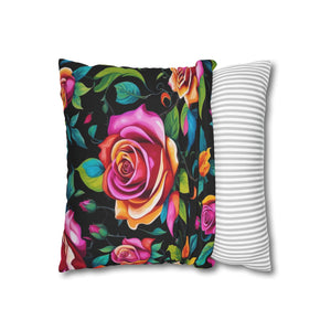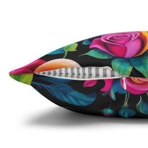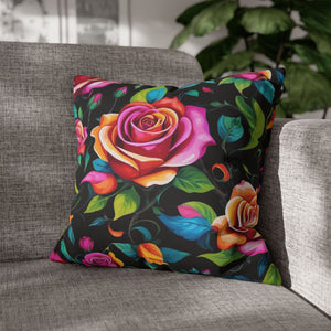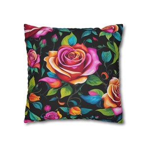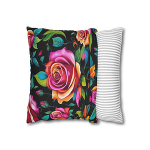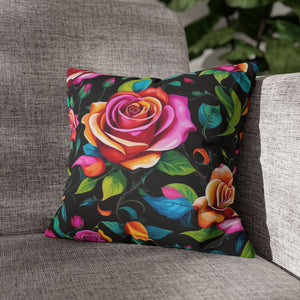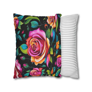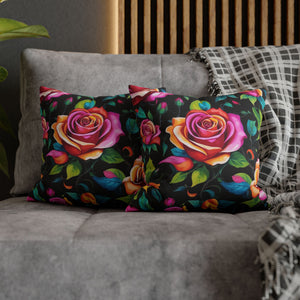 Illuminating Black Light Roses Designed Spun Polyester Pillow Case Cover