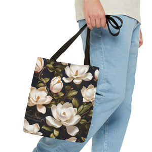 Wild White Magnolias Floral Designed Tote Bag Available in 3 sizes