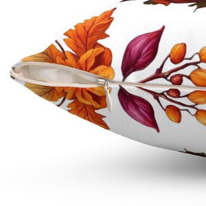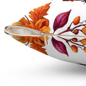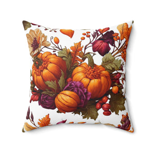 Verdant Autumn Floral and Gourds Designed Throw Pillow in Various Sizes with Insert