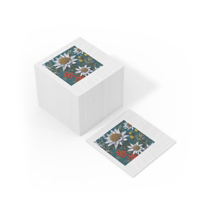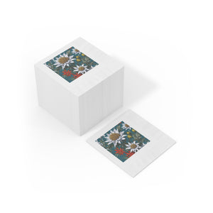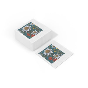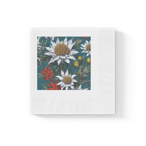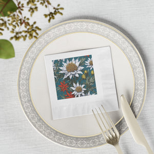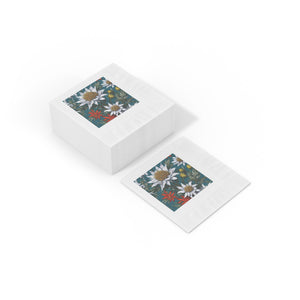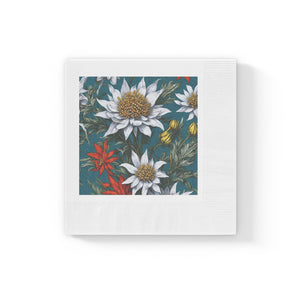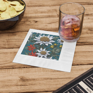 Whimsical Edelweiss Flowers Designed White Coined Napkins 2 Sizes and Counts