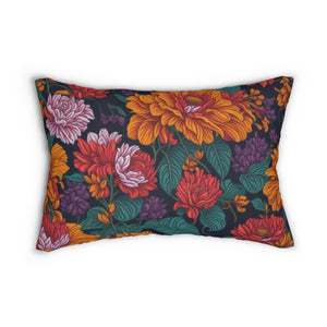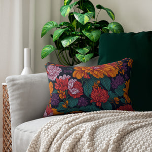 Expressive Tropical Colorful Flowers Designed Floral Spun Polyester Lumbar Pillow