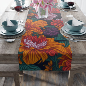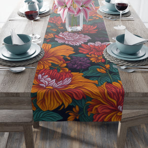Expressive Tropical Colorful Flowers Designed Floral Table Runner (Cotton, Poly) 2 Sizes Available