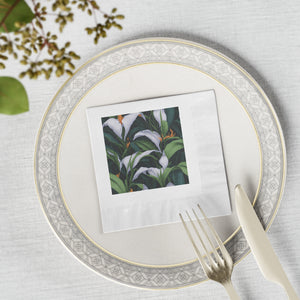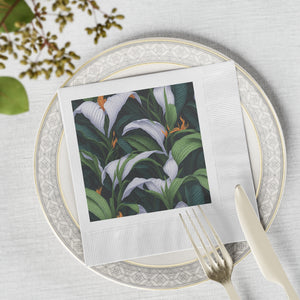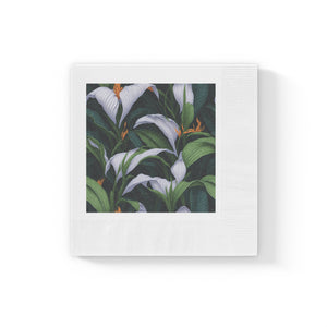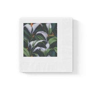 Welcoming Spathiphyllum Perennial Flower Designed White Coined Napkins Available in 2 Sizes and Quantity