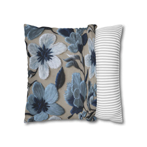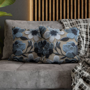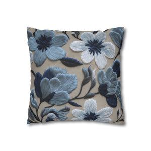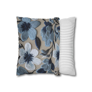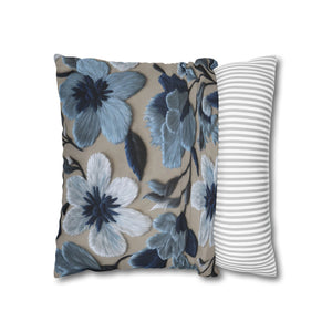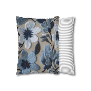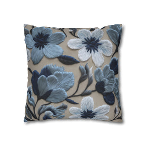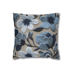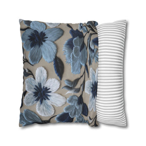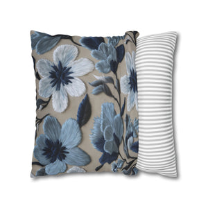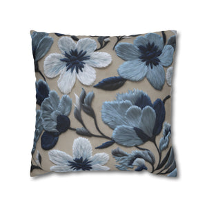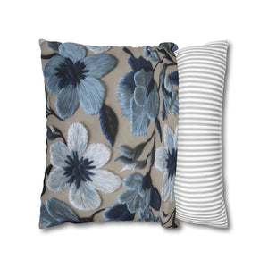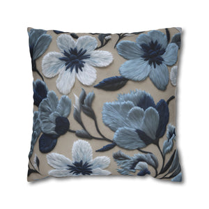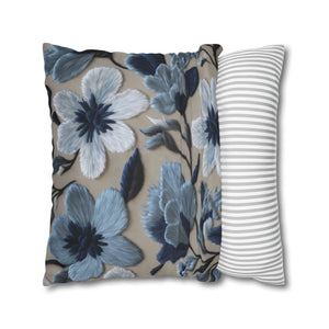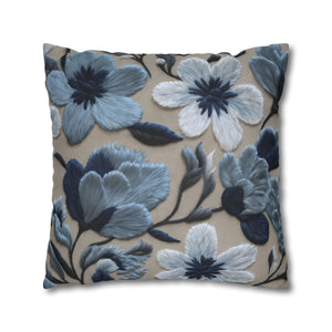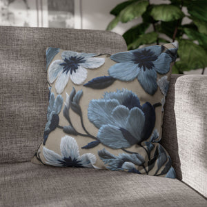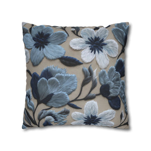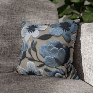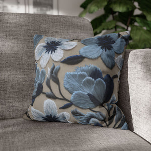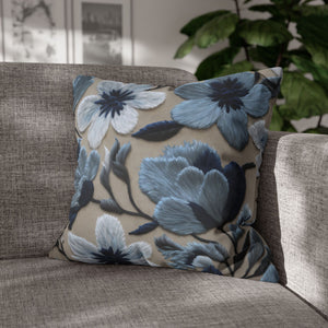 Whispery Blue Floral Spring Garden Spun Polyester Square Pillowcase