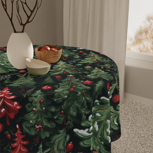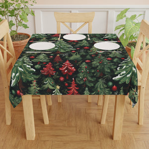 Woodland Christmas Tree Snowy Ornaments Designed 55" x 55" Tablecloth