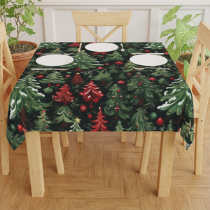 Woodland Christmas Tree Snowy Ornaments Design Tablecloth 2 Sizes Available